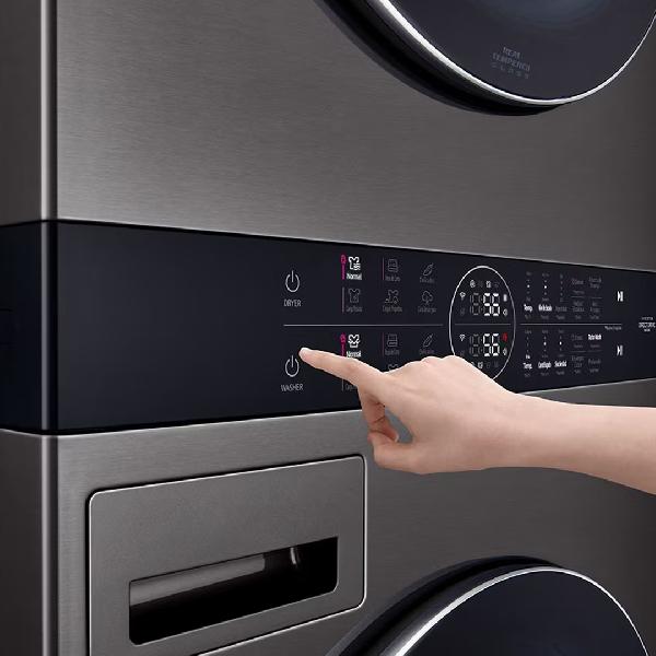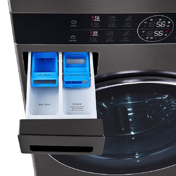 Obtén el diseño elegante y que ahorra espacio de la Torre de Lavado LG, con un lavado ergonómico.