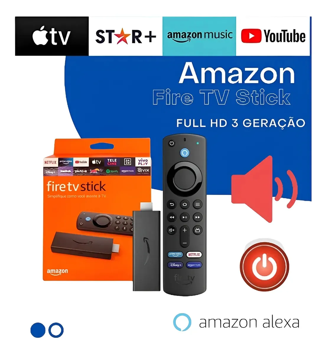 Fire TV Stick simplifica la transmisión con botones de encendido, volumen y silencio en un solo control remoto. Además, permite iniciar aplicaciones rápidamente y transmitir en Full HD.